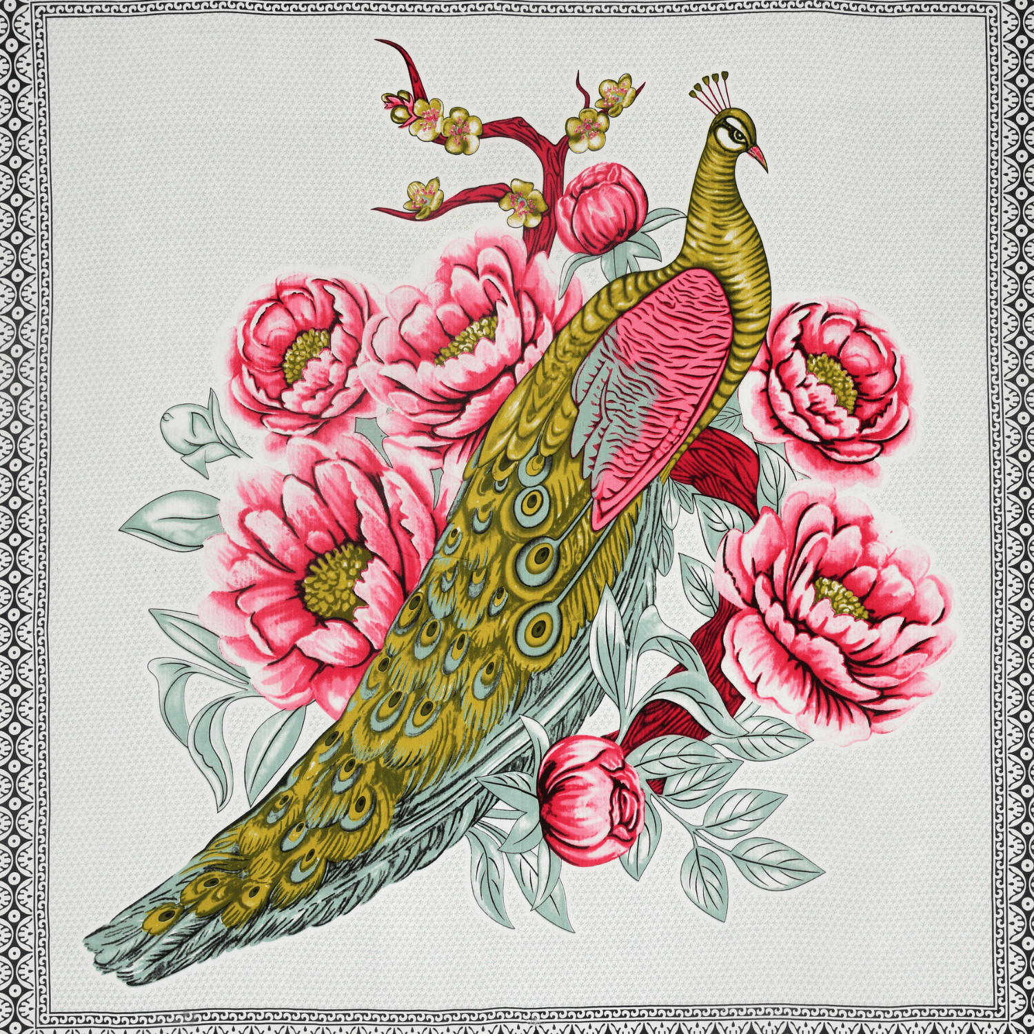 Pure Cotton King Size Peacock Jaipuri Prints Flat Bedsheet (White, Pink)